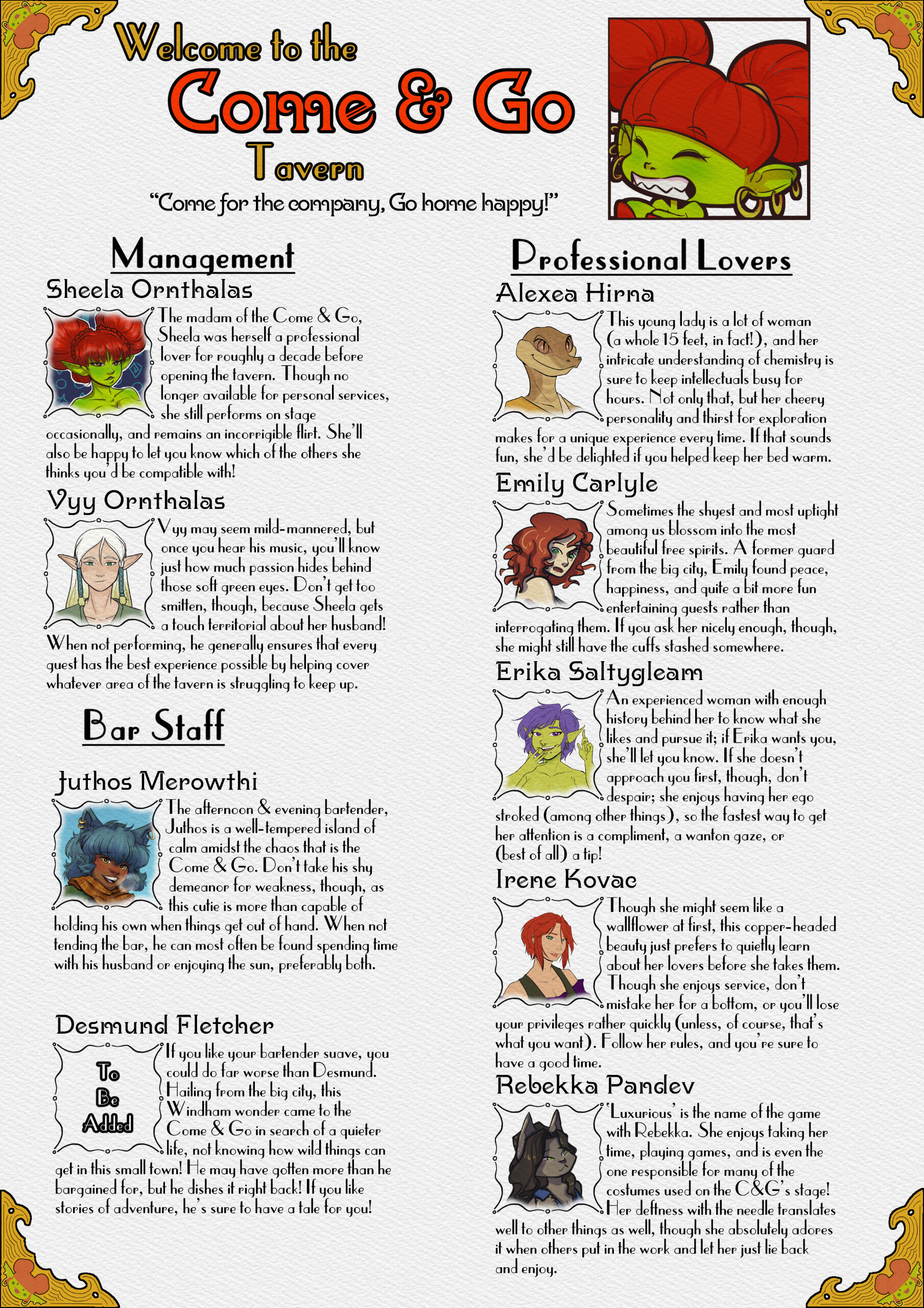 If you're specifically looking for more details about Sheela, the owner & madam of the tavern, click the button below her portrait to the right.
